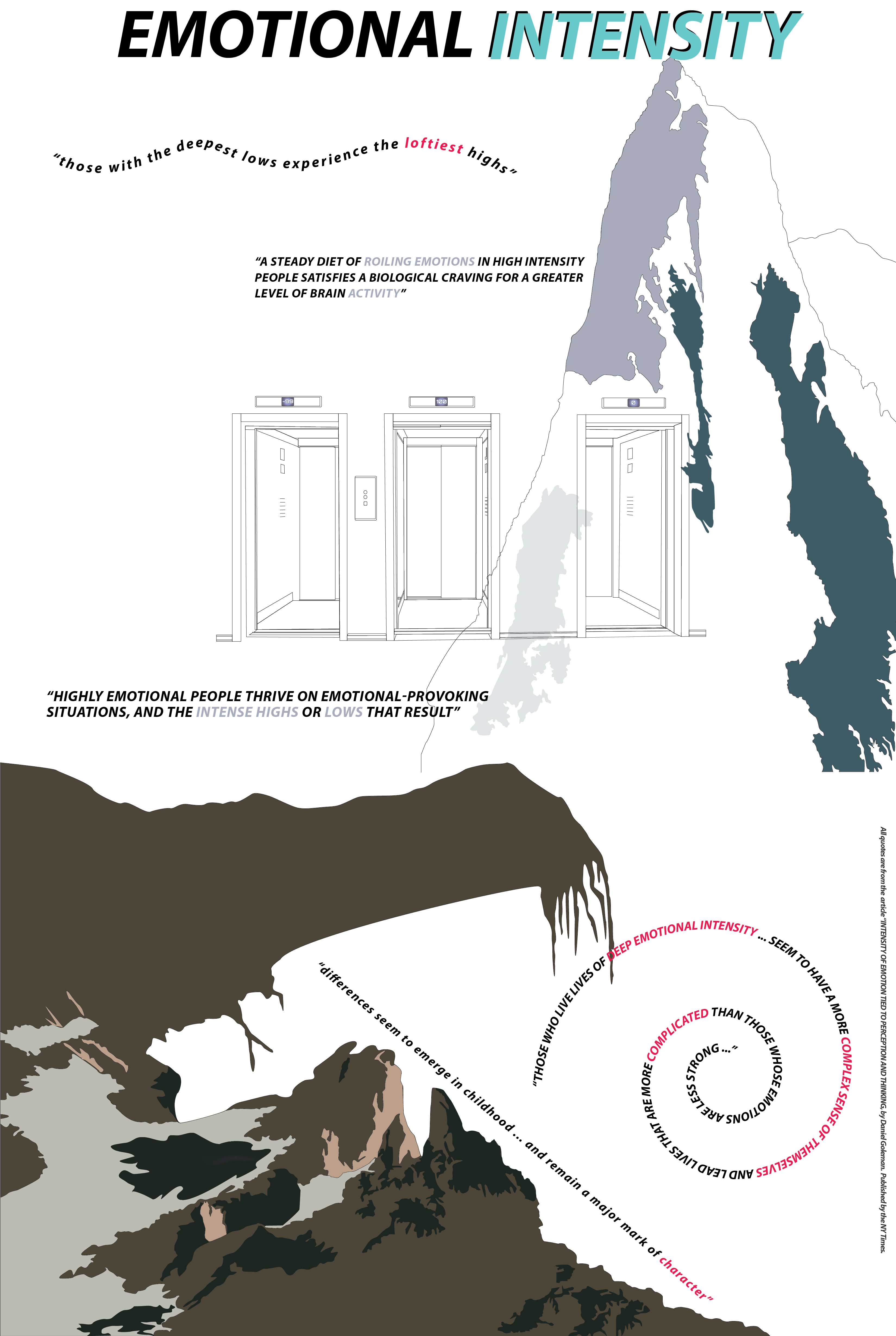 The Job: This graphic design project attempted to create an infographic of a mostly unquantifiable state ~overwhelming emotion.~