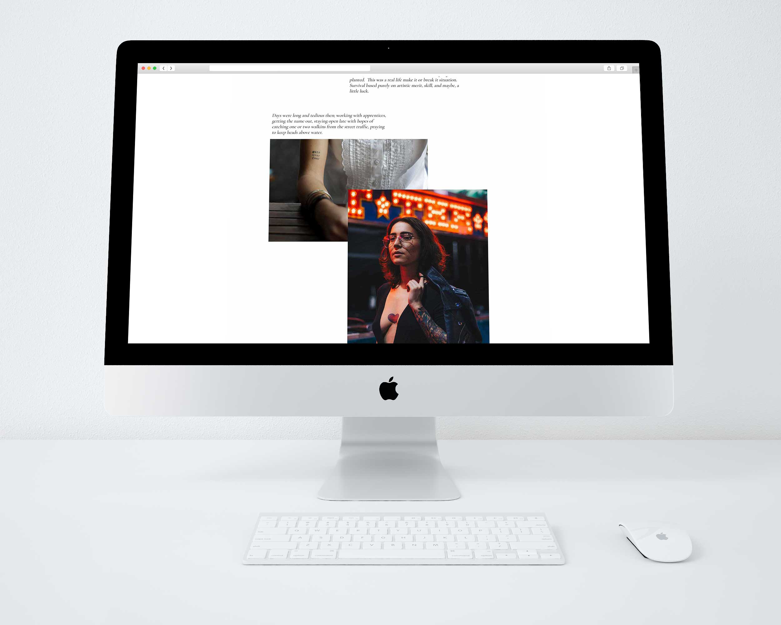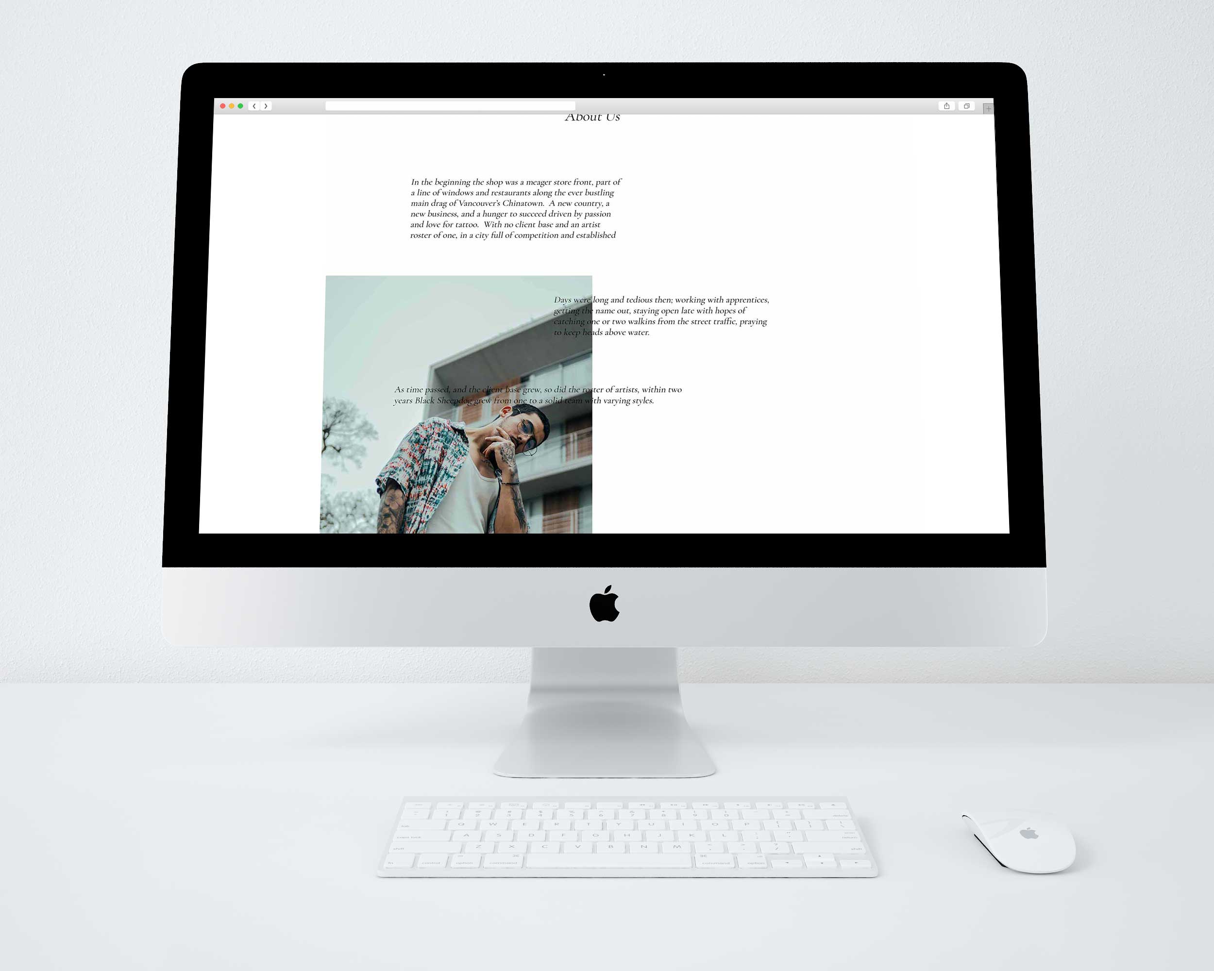 Creative Direction: I was inspired by 90s fashion/culture magazine layouts. I wanted to give it a contemporary feel, reflective of the renovation and revamp that was currently happening at the tattoo shop and the energy created by that. I wanted to emphasize the artistic and fashionable work of the new tattoo artists; at the same time I wanted to honour the lasting, emblematic and momentous signigicance of a tattoo.